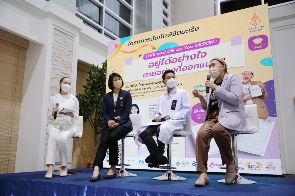 ร่วมด้วย ไอรีล ไตรสารศรี ผู้ก่อตั้งโครงการ Art for Cancer และผู้ป่วยมะเร็งระยะที่ 4 ที่มาร่วมแบ่งปันมุมมองและการวางแผน “การตายดี” ในแบบของตัวเอง