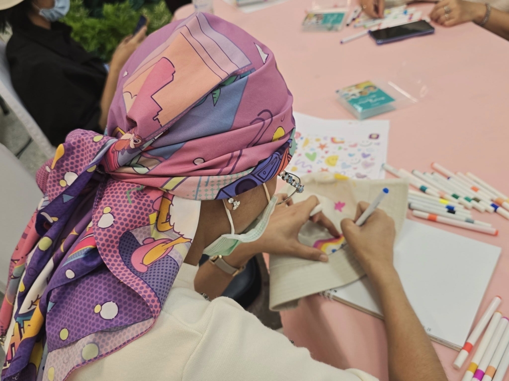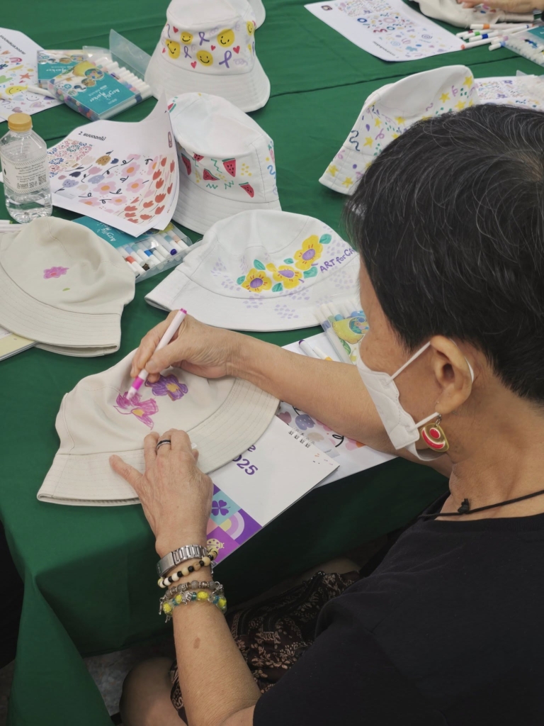 บรรยากาศเต็มไปด้วยความสนุกสนาน เสียงหัวเราะ และความตั้งใจของเพื่อนๆ ผู้ป่วยที่ได้ออกแบบหมวกใบพิเศษในสไตล์ของตัวเอง แต่ละใบคือความสร้างสรรค์และพลังใจที่สวยงามมากๆ