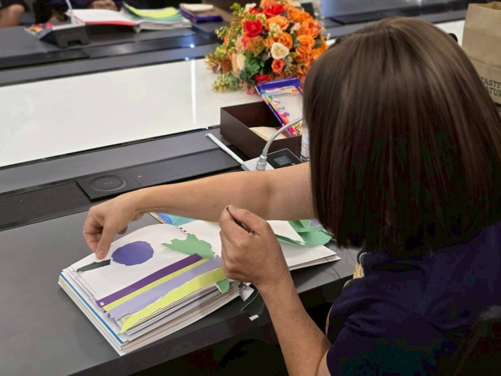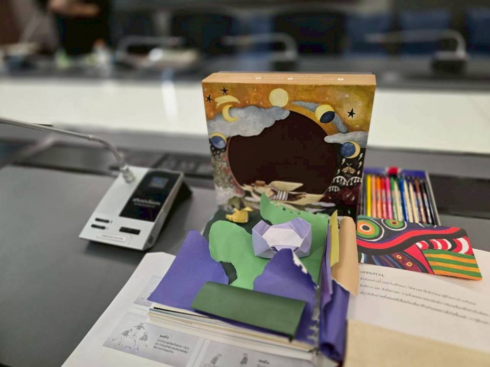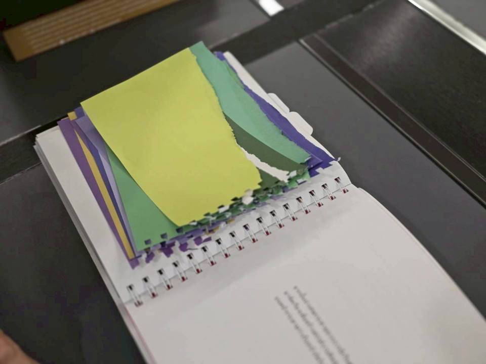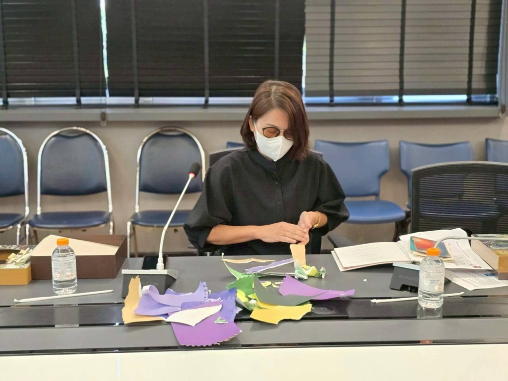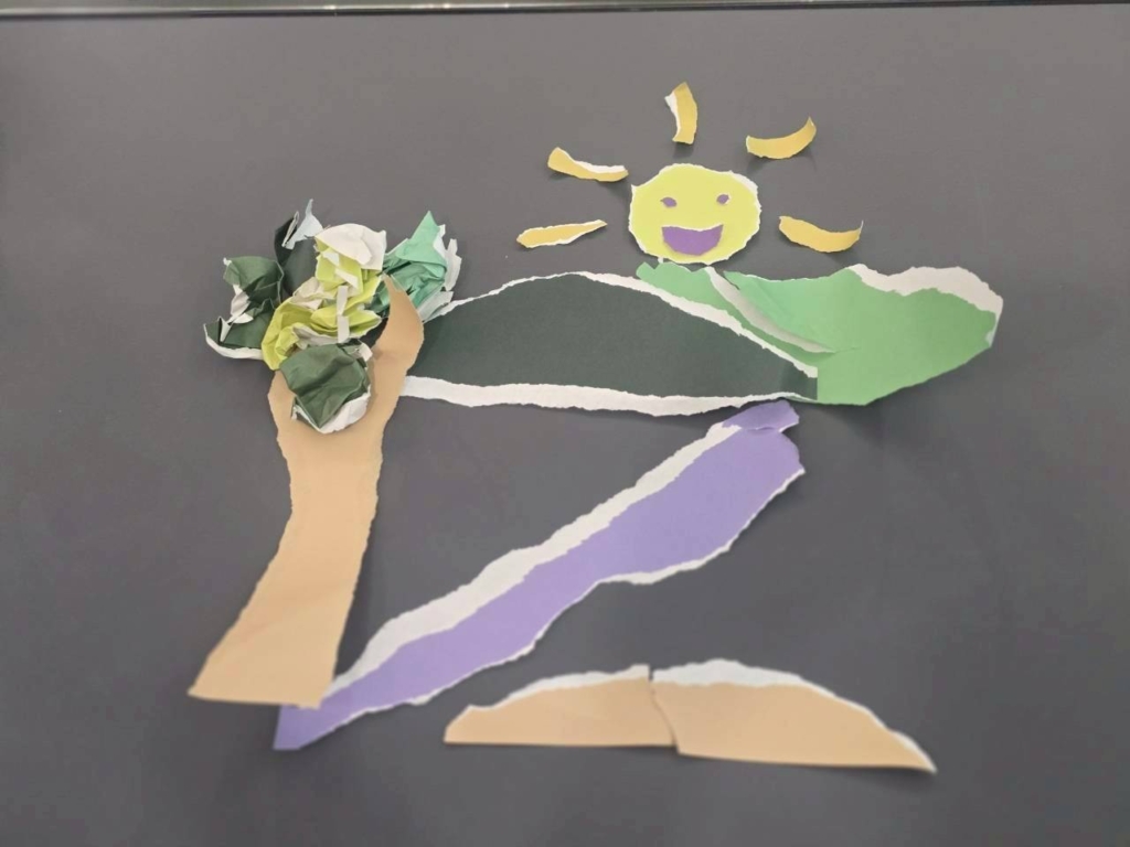 กิจกรรมในครั้งนี้เป็นส่วนหนึ่งจากในเล่ม “ชุดศิลปะดูแลใจ” ชื่อว่า “ฉีกสร้างรูป” ซึ่งเปิดโอกาสให้ผู้ป่วยได้ สร้างงานศิลปะ ด้วยการฉีกหน้ากระดาษในเล่ม และนำเศษกระดาษที่ฉีกออกมา มาสร้างเป็นงานศิลปะของตัวเองได้อีก โดยไม่ต้องยึดติดกับความสวยงามหรือความสมบูรณ์แบบ เพราะทุกเศษที่ฉีก คือชิ้นส่วนของอารมณ์ความรู้สึก…ที่เมื่อถูกวางอย่างตั้งใจ ก็กลายเป็นภาพที่มีความหมาย
