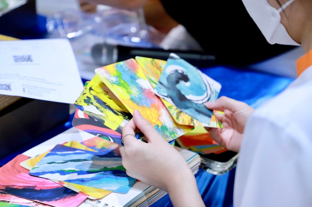 Art for Cancer ได้จัดเวิร์คช็อป “เปิดกล่องชุดศิลปะดูแลใจ” ให้กับ ผู้ป่วยมะเร็ง และผู้ดูแล ที่ รพ.จุฬาภรณ์ เนื่องในวัน World Hospice and Palliative Care Day 2022 โดยแจกชุดศิลปะดูแลใจให้กับผู้ป่วย และผู้ดูแลผู้ป่วย ที่เข้าร่วมฟรี เพื่อร่วมทำเวิร์คช็อปสอนการใช้ชุดศิลปะดูแลใจ โดยมีคุณออย ไอรีล ไตรสารศรี ผู้ก่อตั้ง Atr for Cancer by Ireal (ผู้ป่วยมะเร็งเต้านมระยะที่ 4) เป็นวิทยากร แนะนำวิธีการใช้เพื่อให้ผู้ป่วยสามารถนำกลับไปเล่นได้ด้วยตนเอง