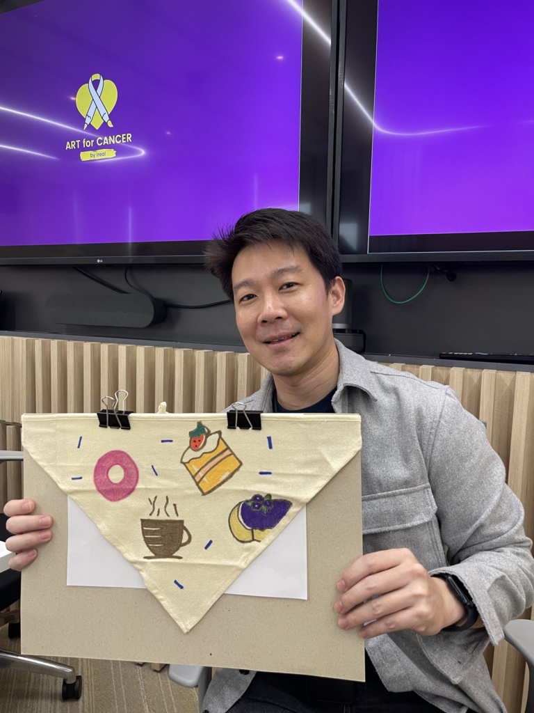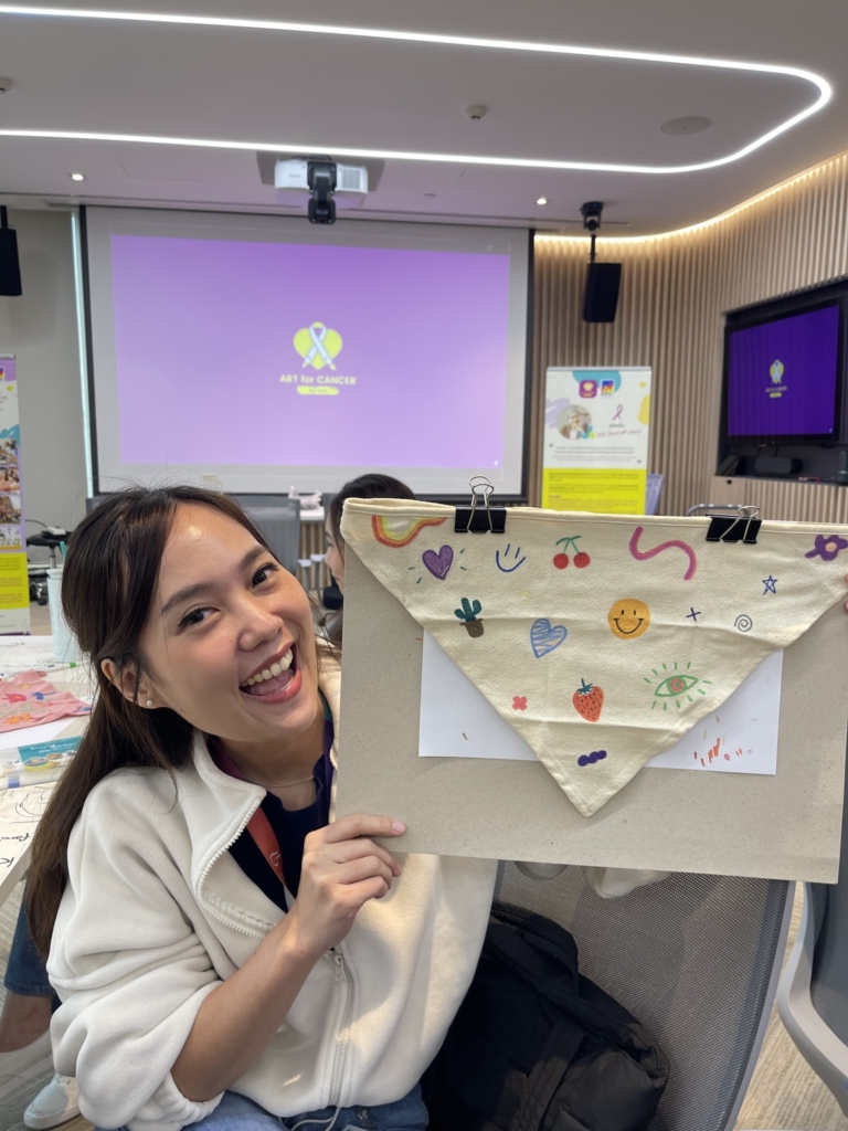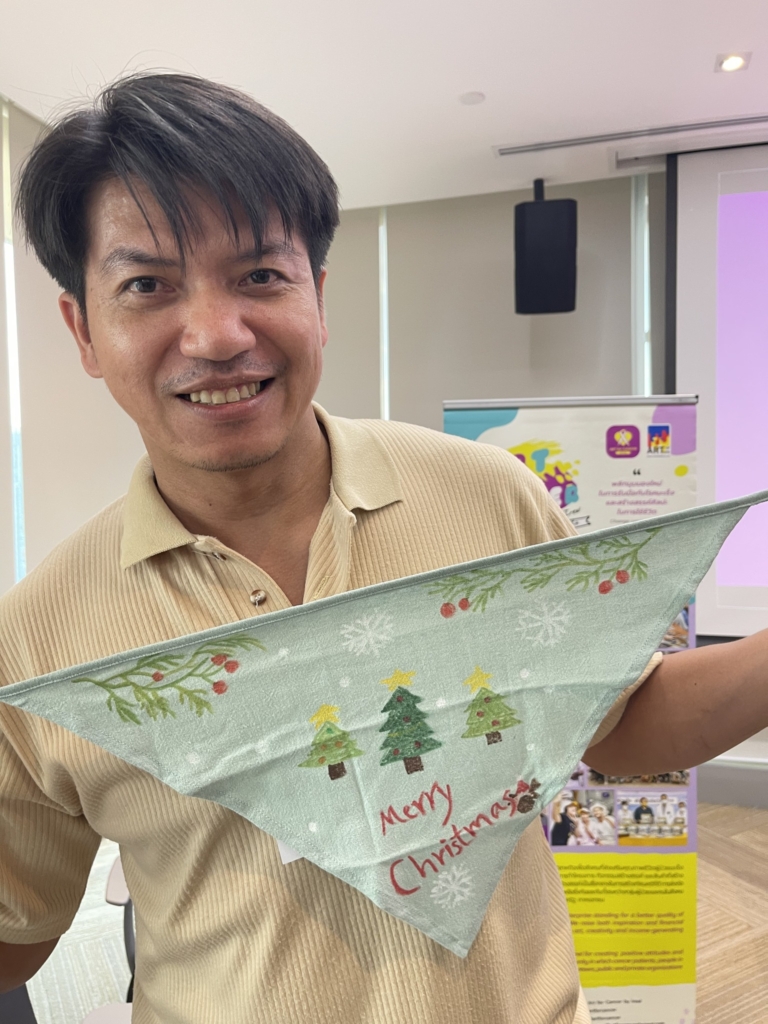 เมื่อวันที่ 23 ธ.ค. 68 ที่ผ่านมา Art for Cancer ได้มีโอกาสไปจัดเวิร์กชอปเพ้นท์ผ้าโพกศีรษะ ให้กับพนักงาน บริษัท โนวาร์ตีส (ประเทศไทย) จำกัด เวิร์กชอปนี้ไม่ใช่แค่การสร้างสรรค์งานศิลปะ แต่เป็นการส่งต่อกำลังใจในหลายรูปแบบรายได้จากการจัดกิจกรรม นำไปสนับสนุนกิจกรรมเพื่อผู้ป่วยมะเร็ง