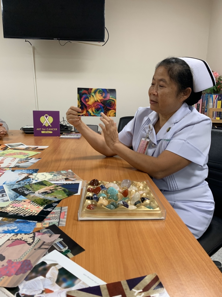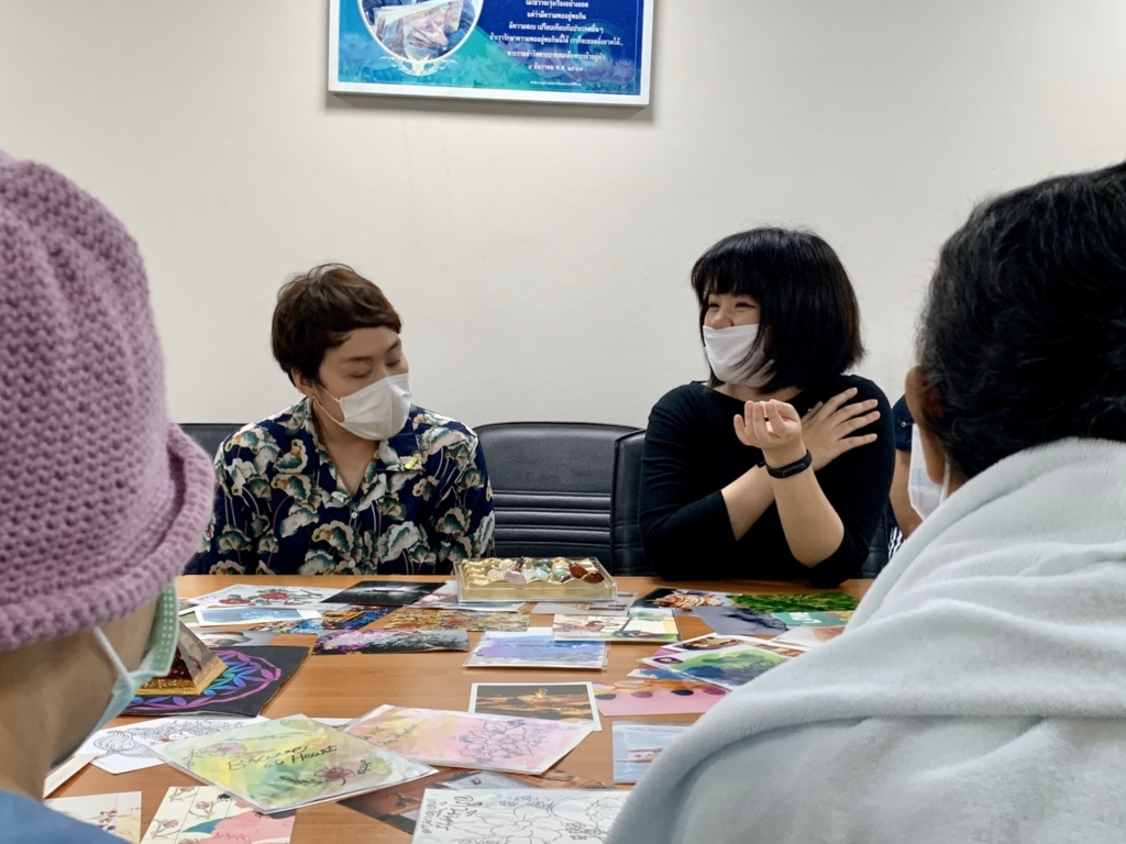 ภาพกิจกรรม Art Therapy “อุ่นรักในใจฉัน” เพื่อผู้ป่วยมะเร็ง รพ.ศิริราช ผู้ป่วยมะเร็งและญาติ ได้พูดคุย รับฟัง แลกเปลี่ยนประสบการณ์ ผ่อนคลายจิตใจในพื้นที่ปลอดภัย พร้อมกับได้รับพลังบวก และมีช่วงเวลาที่ดีร่วมกันผ่านกิจกรรมของเรา ขอบพระคุณคุณหมอ และพยาบาล ที่เห็นความสำคัญของการ ดูแลจิตใจผู้ป่วย และให้โอกาส Art for Cancer ได้เข้าไปจัดกิจกรรม ให้กับผู้ป่วย และขอบคุณผู้สนับสนุนทุกท่านที่ร่วมสนับสนุนเราในการทำงานเพื่อพัฒนาคุณภาพชีวิตผู้ป่วยมะเร็งมาโดยตลอด