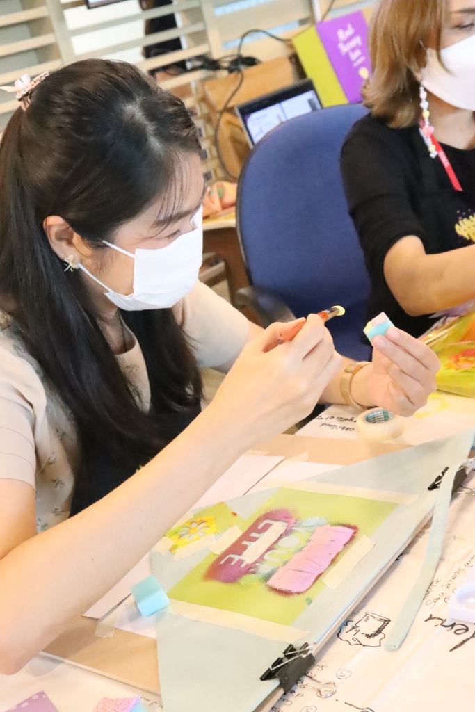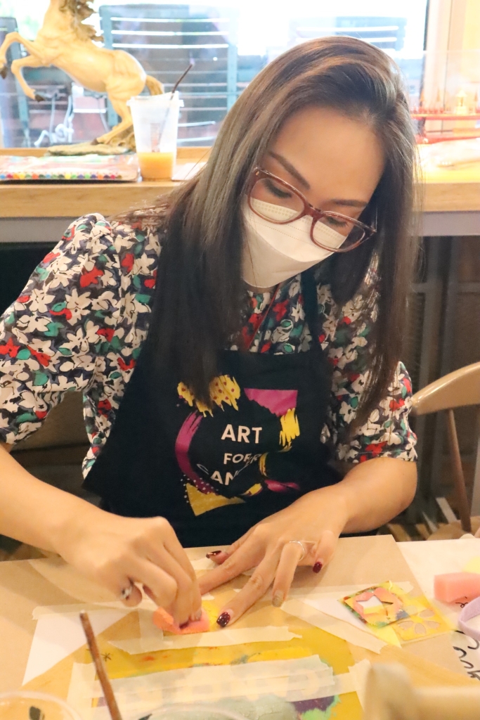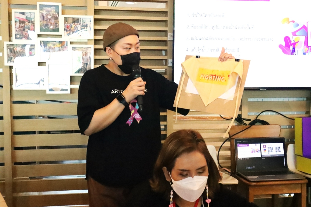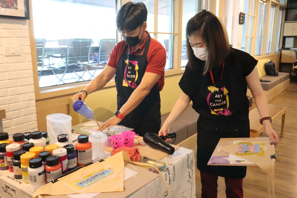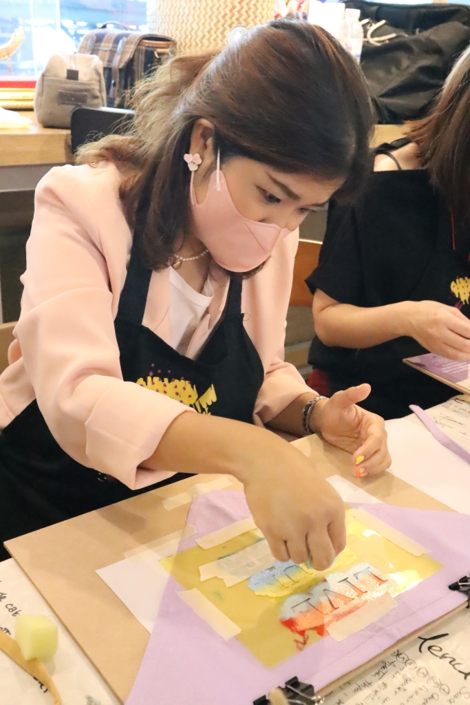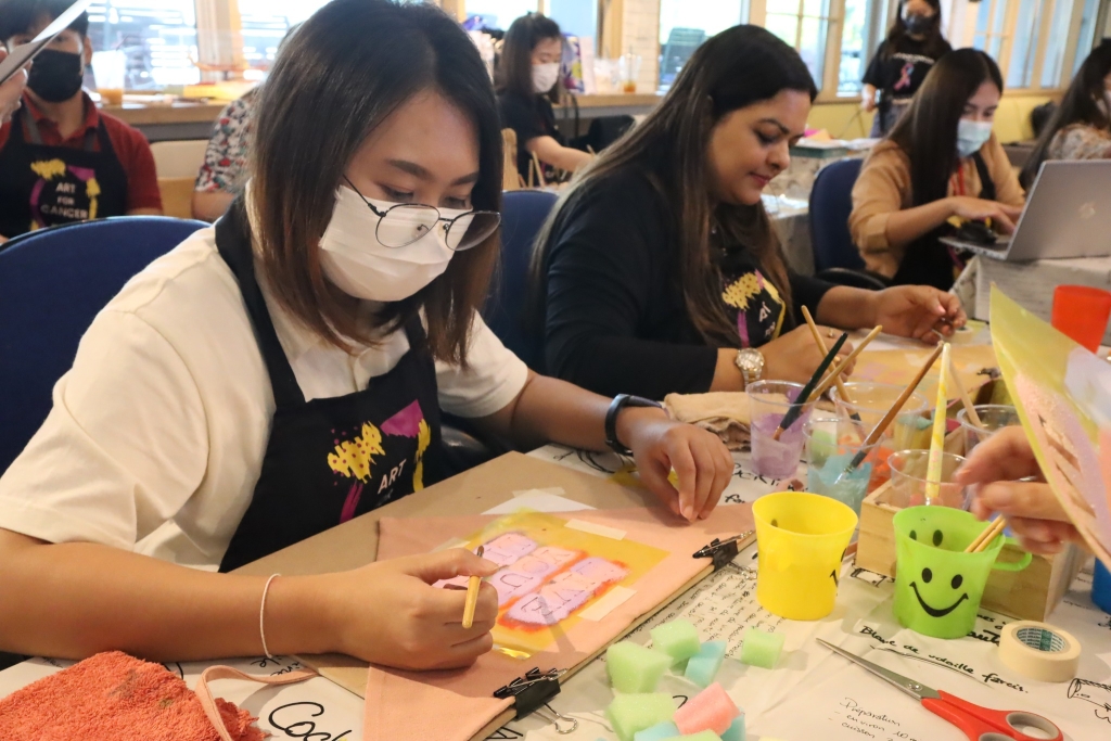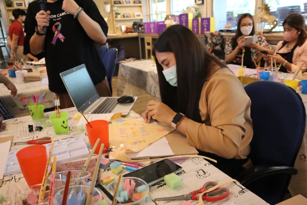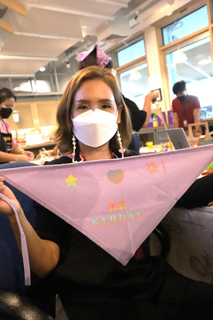 โดยมีออย ไอรีล ผู้ก่อตั้ง Art for Cancer และผู้ป่วยมะเร็งระยะที่ 4เป็นคนนำกิจกรรม และสาธิตวิธีเพ้นท์ผ้าโพกหัวแบบง่ายๆ ซึ่งคนที่ไม่มีพื้นฐานศิลปะ ก็สามารถสนุกกับเวิร์คช็อปครั้งนี้ได้