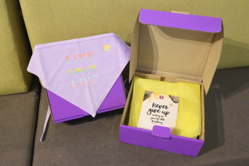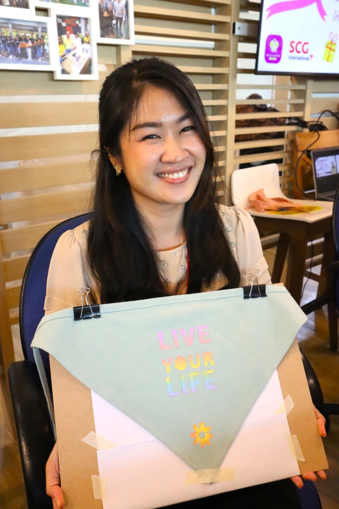 💜💛 กิจกรรมนี้ Art for Cancer จัดร่วมกับ SCG ชวนกันมาทำความดีในเวิร์คช็อปเพ้นท์ผ้าโพกหัวน่ารักๆ เพื่อใส่ใน “กล่องพลังใจ” มอบให้ผู้ป่วยมะเร็ง 🤟 ซึ่งทุกคนได้สนุกกับการทำลวดลายและข้อความให้กำลังใจสีสันสดใสลงไปบนผ้าโพกผัวสามเหลี่ยม 🌈⭐️